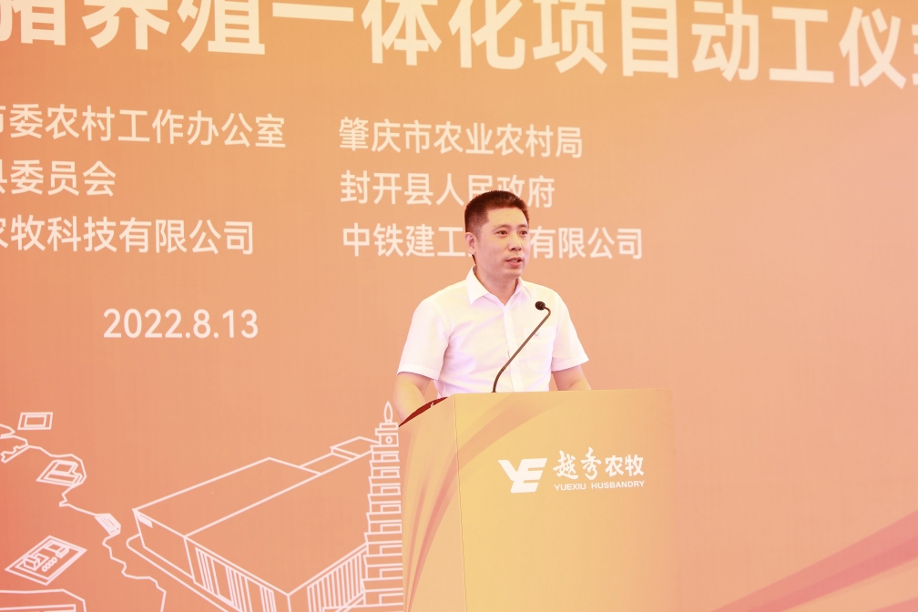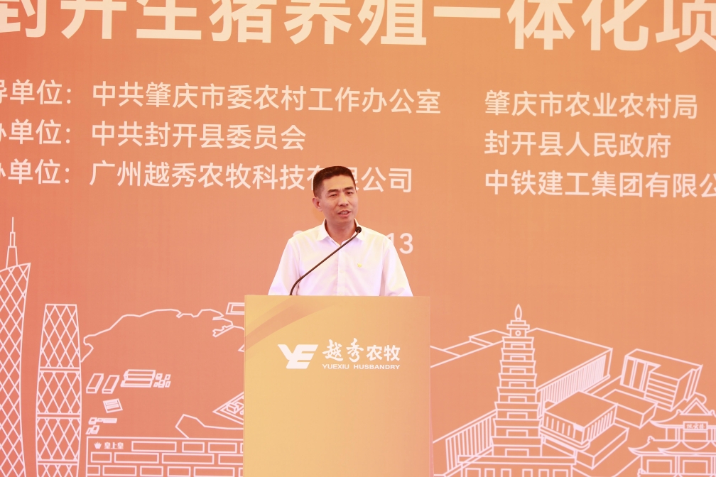 肇庆市委常委、封开县委书记秦波在致辞中向304am永利封开生猪养殖一体化项目的开工表示祝贺。他指出,304am永利集团是横跨一二三产业的大型综合性国有企业,304am永利食品是粤港澳大湾区领先的全产业链食品产业集团。304am永利农牧封开生猪养殖一体化项目从签约到全面动工仅用1年的时间,集团以高度的战略思维、深厚的战略情怀,一流的团队、一流的进度效果狠抓落实,充分体现了新时代国有企业的强大实力、责任担当和优良作风。肇庆市、封开县各级部门将在政策扶持、要素保障、政务服等方面给予项目全方位的支持,全面推动项目建设,争取早日竣工达产。